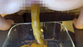 謎の快便美少女サキちゃんが戻って来ました笑眼鏡が似合うサキちゃんは今回も大量脱糞!容器に軟便とおしっこがドドドっと注がれます。当然完食せねば...
