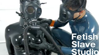 ラバードールに自らのブーツとキャットスーツを丁寧に舐めさせる女王様。やがて二人はガスマスクを装着し、女王様はドールを電マで調教していく。#l...